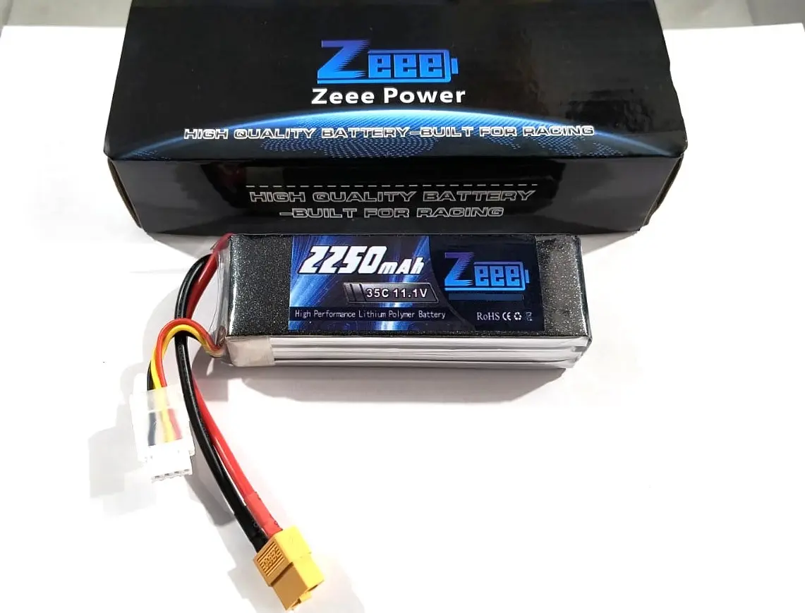 BATERIA DE LIPO 3S 11.1V 2250MAH 35C COM PLUG XT60 - ZEEE POWER ZEE3S225035XT60. BATERIA DE MUITA QUALIDADE!!! Especificações: Modelo No.: Zeee 3S 11.1V 2250mAh 35C, plug XT60 Medidas: Comprimento: 105 mm (10,5 cm) Largura: 35 mm (3,5 cm) Altura: 25 mm (2,5 cm) Peso aproximado: 178g Garantia do vendedor: 30 dias